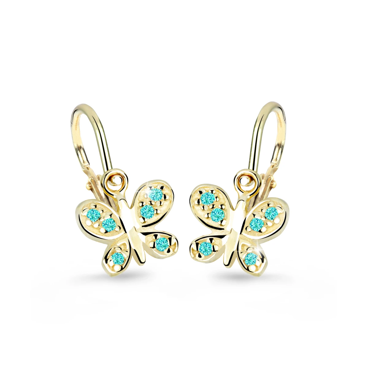 Zlaté dětské náušnice C2748Z-Zeleno modrá