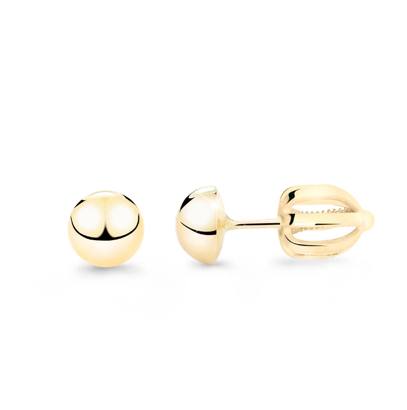 Náušnice na šroubek ze žlutého zlata ryzosti 585/1000. Zlaté náušnice pecky se zapínáním na šroubek. Průměr polokuličky 6mm. Průměr dříku 0,9mm.