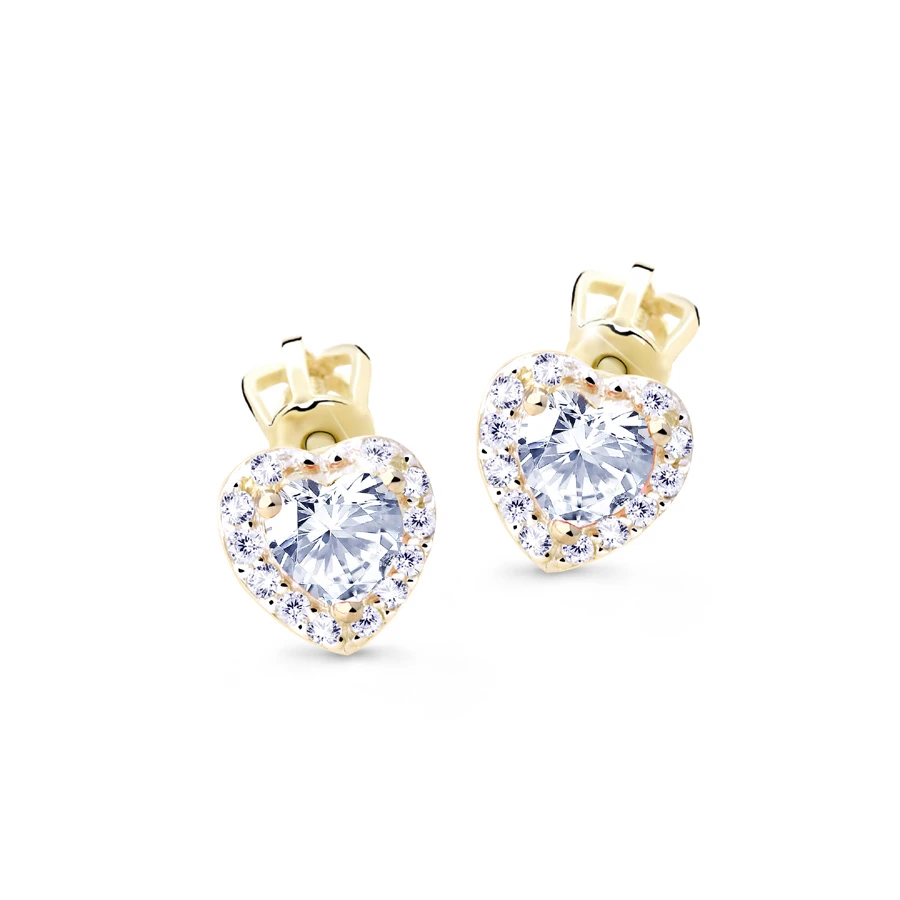 Zlaté náušnice pecky ze zlata ryzosti 585/1000. Náušnice jsou ozdobeny zirkony a jsou určené pro dívky a ženy. Náušnicové zapínání je na šroubek. Rozměry náušnic 6,2x6,2mm, najdete zobrazené na podpůrné fotografii. Krásné zlaté náušnice se srdíčky pro vaše drahé.