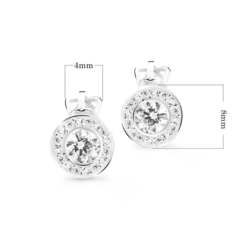 Zlaté náušnice se zirkony pecky. Krásné dámské náušnice vyrobené z bílého zlata ryzosti 585/000. Rozměry náušnic najdete zobrazené na podpůrné fotografii. Náušnicové zapínání je na šroubek.