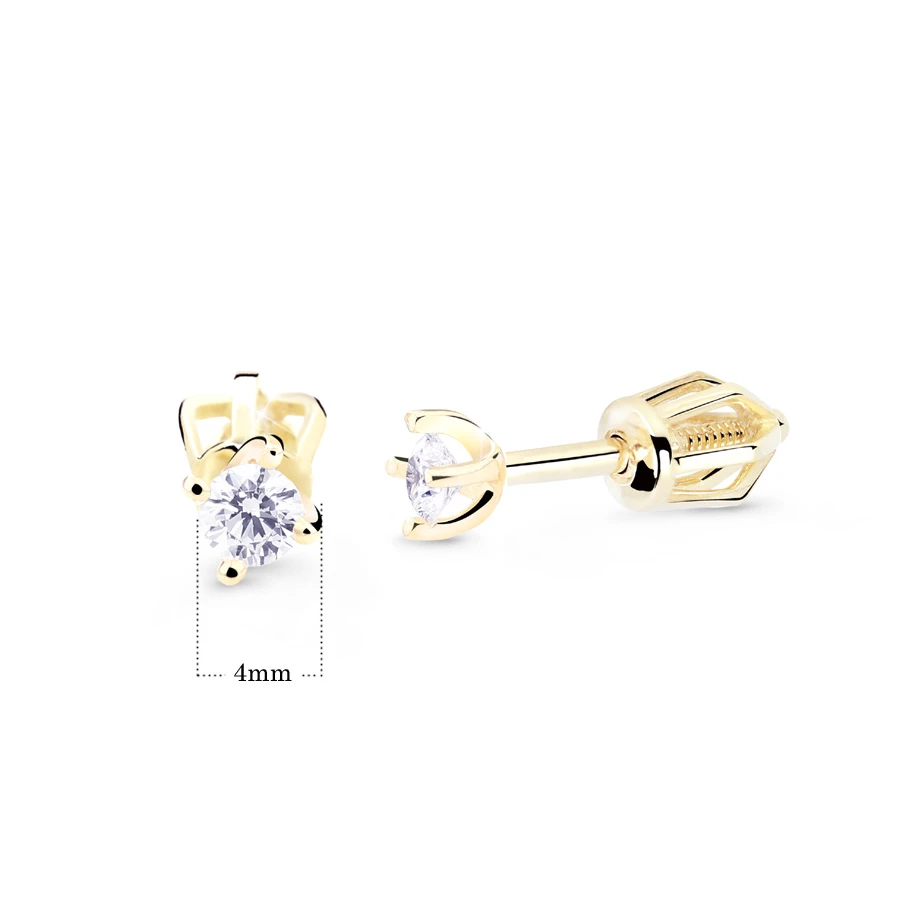 Náušnice z růžového zlata ryzosti 585/000. Jednoduché zlaté pecky se zirkony se zapínáním na šroubek. Průměr ozdoby se zirkonem 4mm.