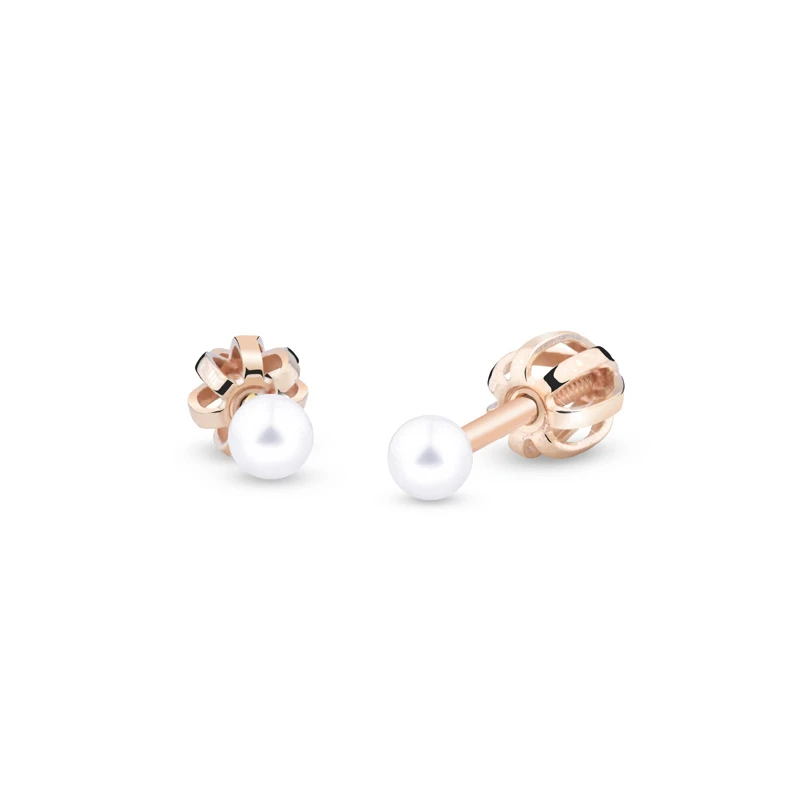Náušnice s kultivovanou říční perlou z růžového zlata ryzosti 585/1000. Osazené říční perly jsou v kvalitě AAA. Perličky mají průměr 3mm. Náušnicové zapínání je na šroubek.