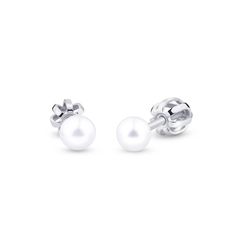 Náušnice s kultivovanou říční perlou z bílého zlata ryzosti 585/1000. Osazené říční perly jsou v kvalitě AAA. Perličky mají průměr 4mm. Náušnicové zapínání je na šroubek.