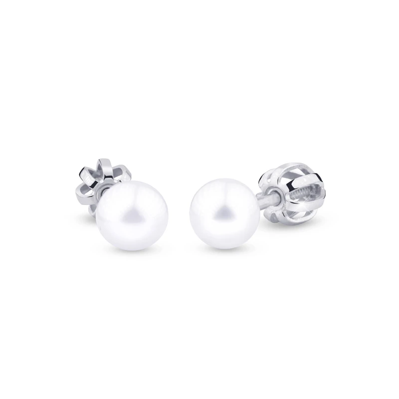 Náušnice s kultivovanou říční perlou z bílého zlata ryzosti 585/1000. Osazené říční perly jsou v kvalitě AAA. Perličky mají průměr 5mm. Náušnicové zapínání je na šroubek.