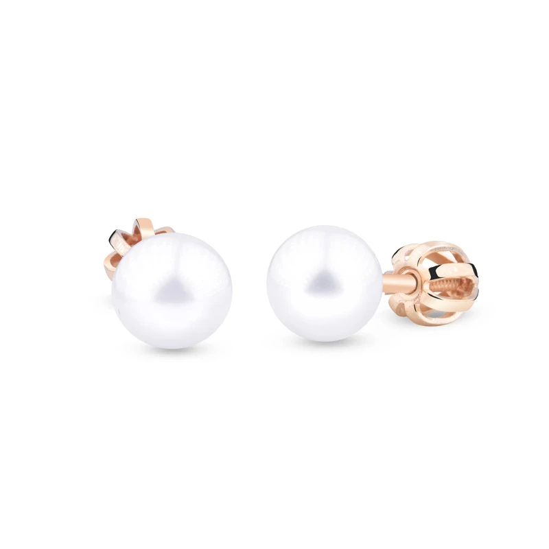 Náušnice s kultivovanou říční perlou z růžového zlata ryzosti 585/1000. Osazené říční perly jsou v kvalitě AAA. Perličky mají průměr 6mm. Náušnicové zapínání je na šroubek.