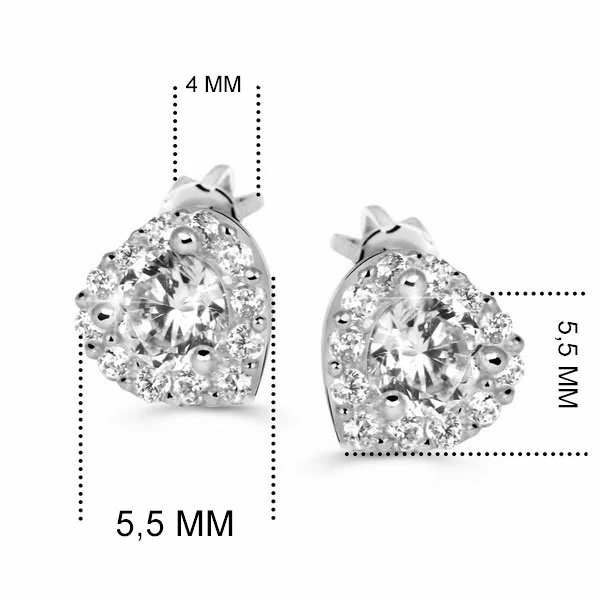 Zlaté náušnice se zirkony vyrobené z bílého zlata 585/000. Rozměr srdíček 5,5x5,5 mm. Náušnicové zapínání na je na šroubek. Průměr náušnicového zapínání 4 mm.