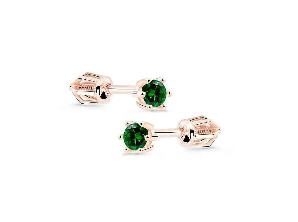 Zlaté náušnice na šroubek se zirkony vyrobené z růžového zlata ryzosti 585/1000. Klasické náušnice pecky ozdobené 4mm zirkonem. Praktické náušnicové zapínání na šroubek zaručuje pohodlné užívání náušnic. Rozměry náušnic najdete zobrazené na podpůrné fotografii.