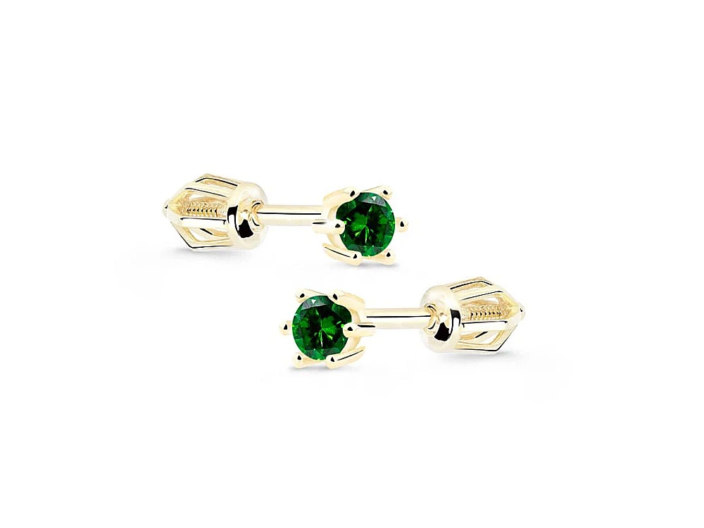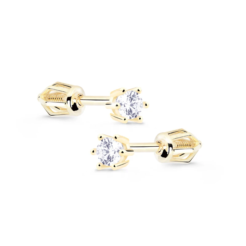 Zlaté náušnice na šroubek se zirkony vyrobené ze žlutého zlata ryzosti 585/1000. Klasické náušnice pecky ozdobené 4mm zirkonem. Praktické náušnicové zapínání na šroubek zaručuje pohodlné užívání náušnic. Rozměry náušnic najdete zobrazené na podpůrné fotografii.
