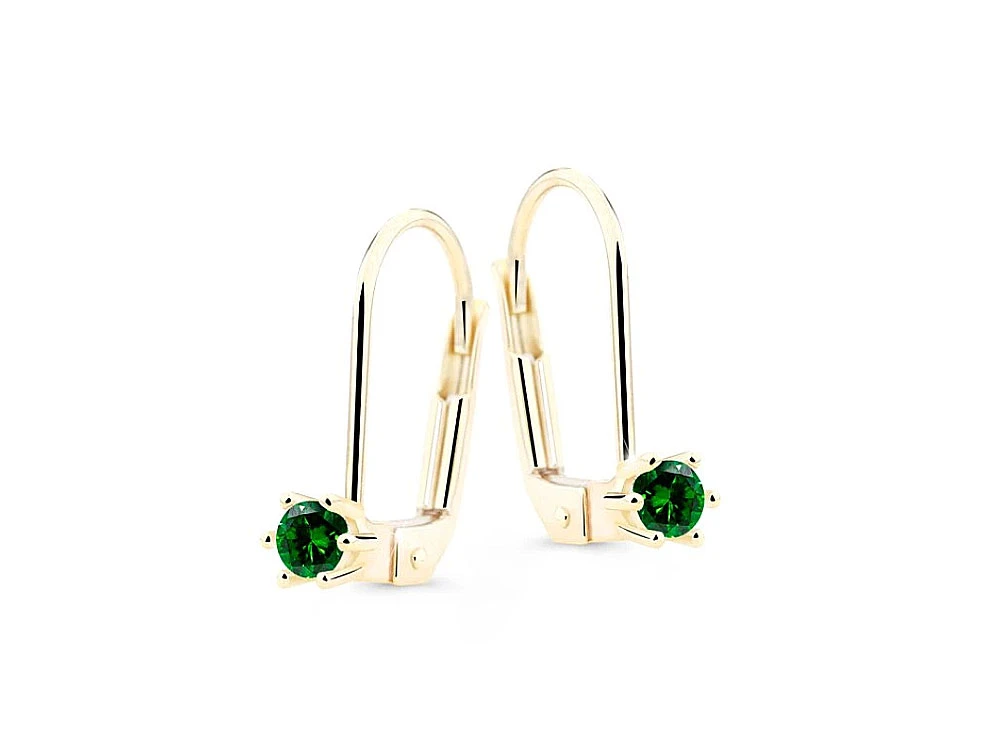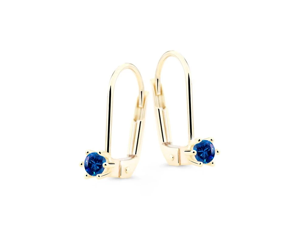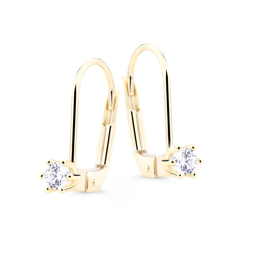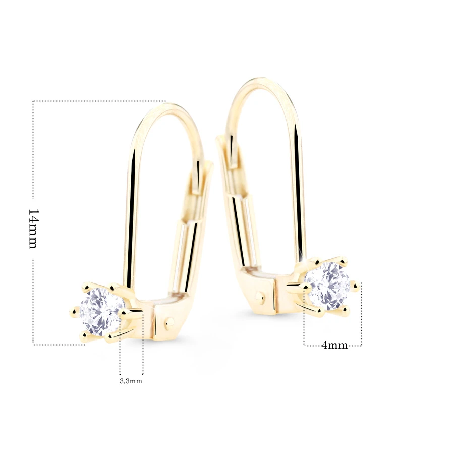 Visací náušnice se zirkony ze žlutého zlata ryzosti 585/1000. Elegantní zlaté visací náušnice ozdobené 4mm zirkony. Náušnicové zapínání je na klapku. Rozměry náušnic najdete zobrazené na podpůrné fotografii.