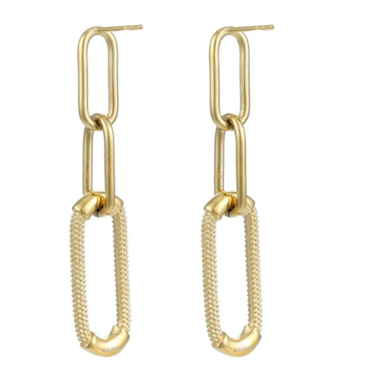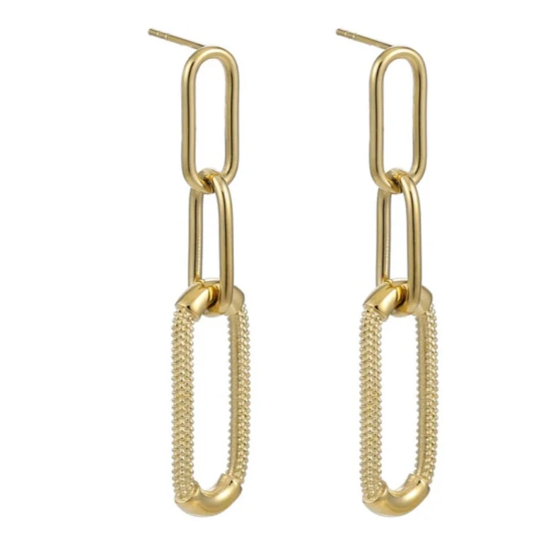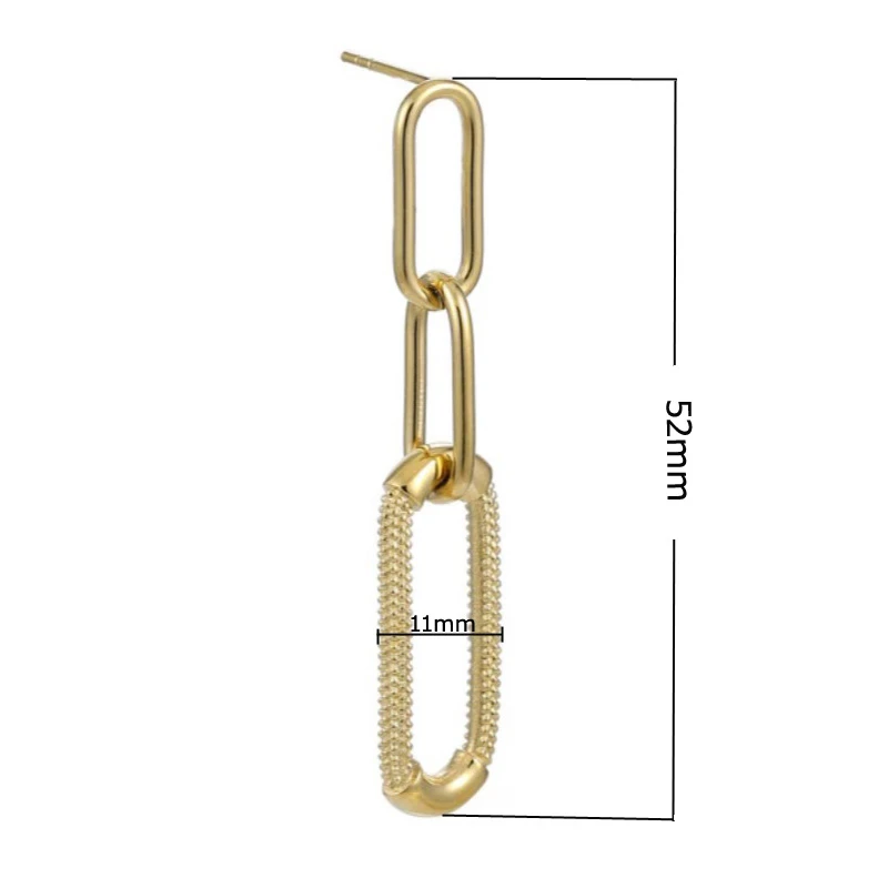 Pozlacené visací náušnice z chirurgické oceli. Náušnice jsou pozlacené technologií PVD. Celková délka náušnic 52mm. Náušnicové zapínání je na puzetky. Uvedená cena platí za pár.
