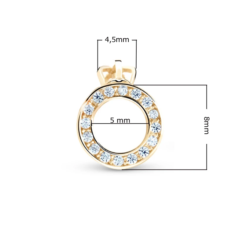 Náušnice se zirkony vyrobené z růžového zlata 585/1000. Náušnice jsou ozdobené prvotřídními zirkony. Náušnicové zapínání je na praktický šroubek. Vnější průměr náušnic 8 mm. Rozměry náušnic najdete vyobrazené na podpůrné fotografii.