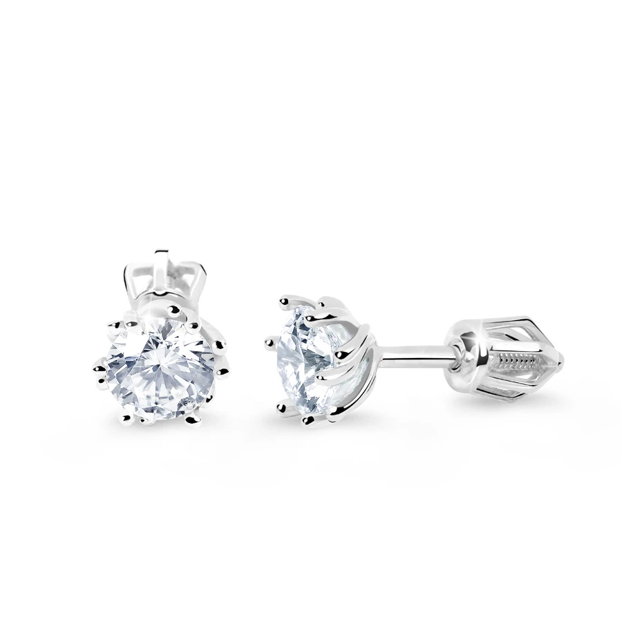 Náušnice z bílého zlata pecky. Zlaté náušnice se zirkony, náušnicové zapínání je na šroubek. Rozměry náušnic najdete zobrazené na podpůrné fotografii.