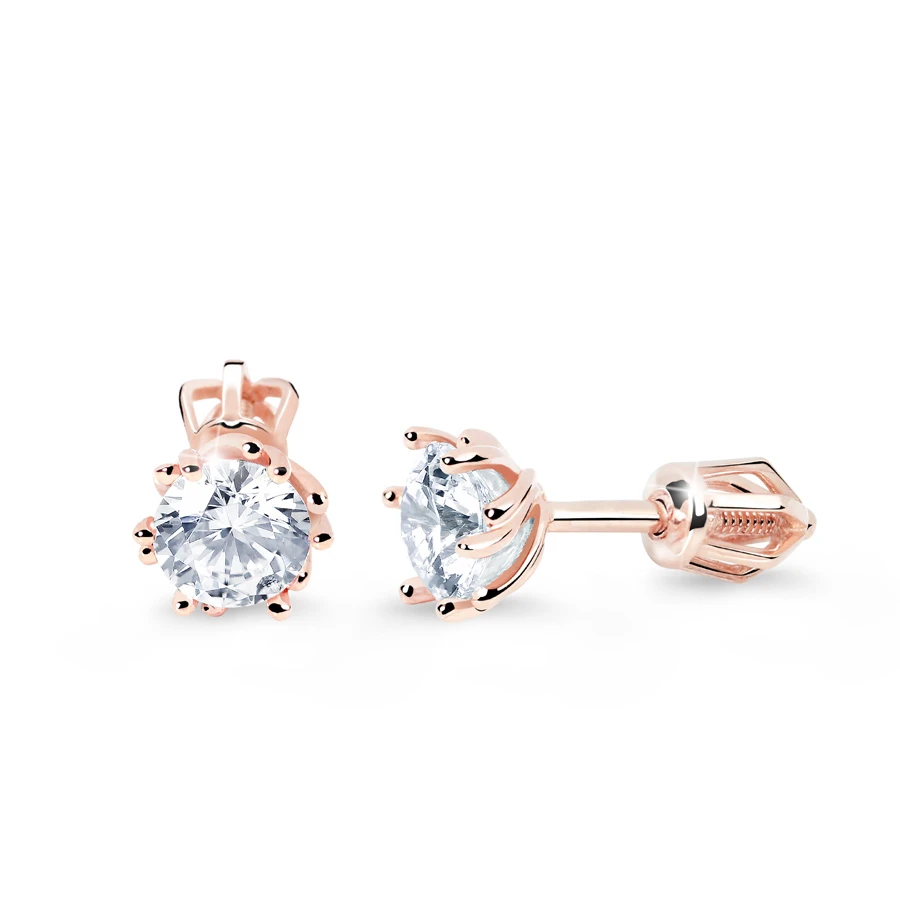 Náušnice z růžového zlata se zirkony, náušnicové zapínání je na šroubek. Rozměry náušnic najdete zobrazené na podpůrné fotografii.