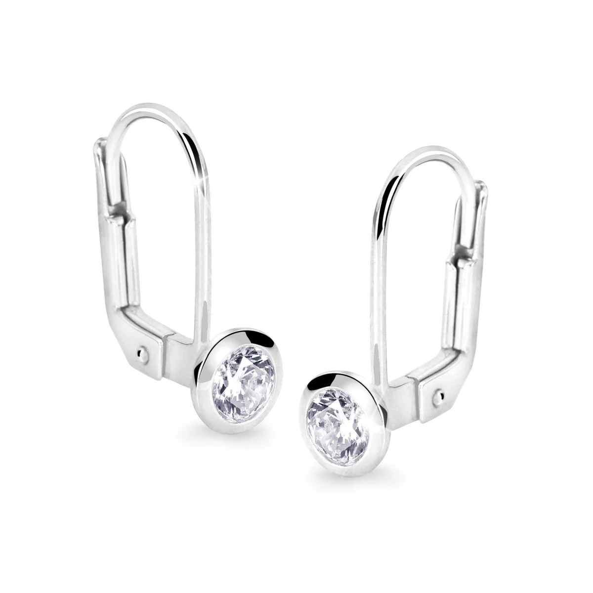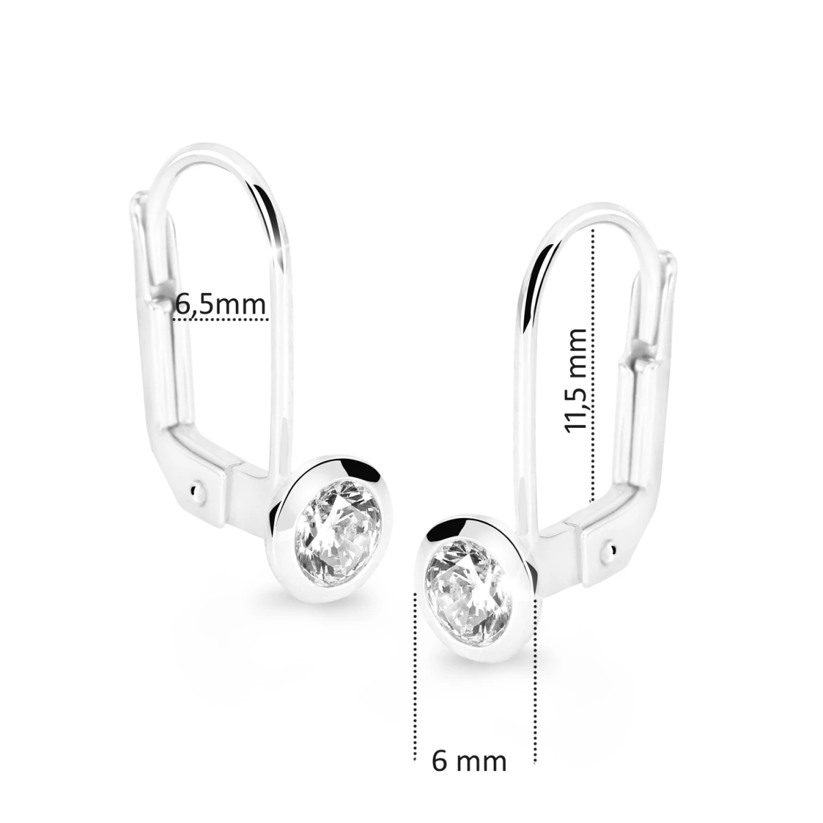 Náušnice z bílého zlata ryzosti 585/000. Zlaté náušnice se zirkony se zapínáním na klapku. Průměr ozdoby se zirkonem 6mm. Rozměry náušnice najdete zobrazené na podpůrné fotografii.