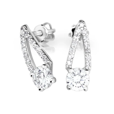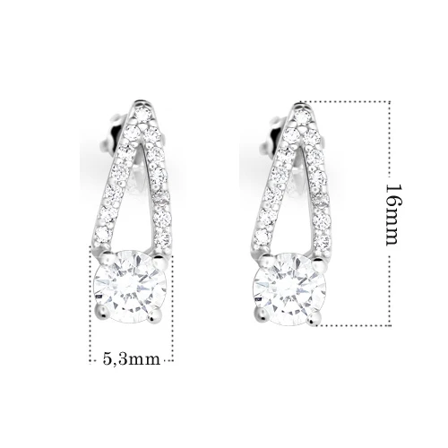 Náušnice z bílého zlata ryzosti 585/1000 se zirkony. Krásné dámské náušnice se zapínáním na šroubek. Rozměr náušnic 16mm x5,3 mm najdete zobrazený na podpůrné fotografii. Elegantní zlaté visací náušnice pro ženy se zářivými kamínky.