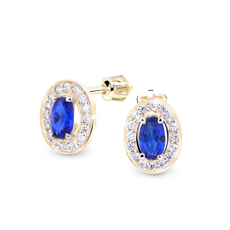 Zlaté náušnice se zirkony oválného tvaru. Náušnice jsou vyrobeny ze žlutého zlata 585/1000 a osazené jsou prvotřídními zirkony. Náušnicové zapínání je na šroubek. Výška náušnic 9mm, šířka 7mm.