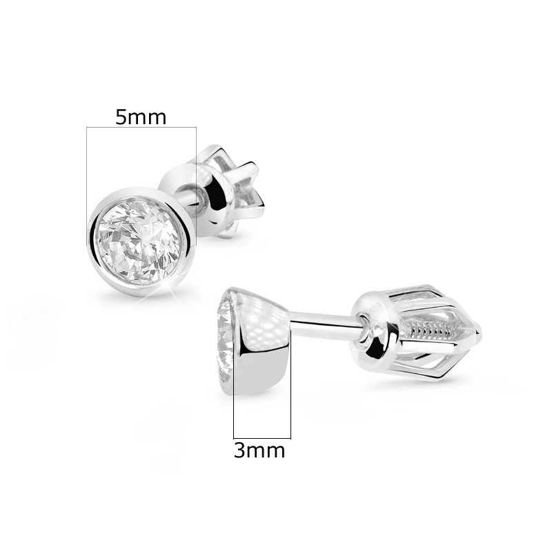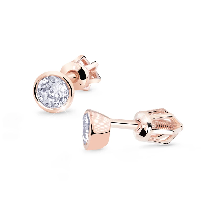 Náušnice pecky z růžového zlata 585/1000. Zlaté náušnice se zirkony, náušnicové zapínání je na šroubek. Rozměry náušnic najdete zobrazené na podpůrné fotografii.