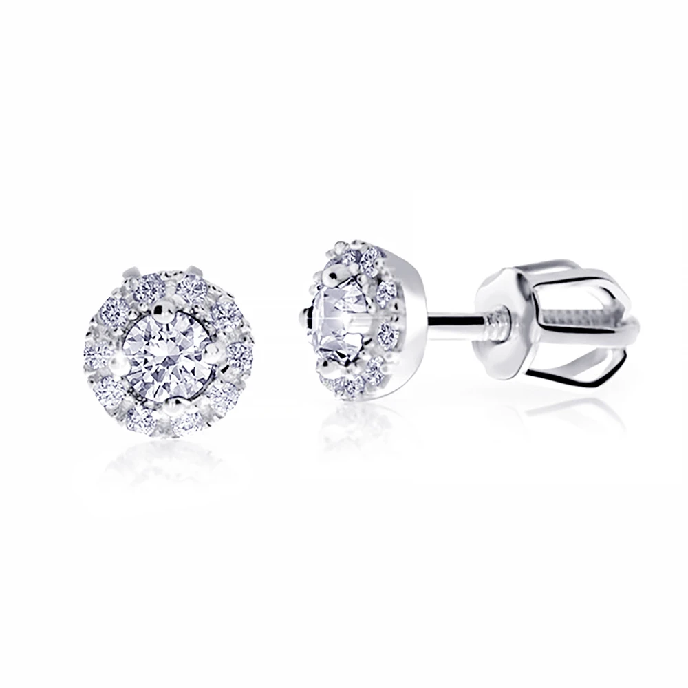 Náušnice z bílého zlata pecky se zapínáním na šroubek. Náušnice jsou ze zlata ryzosti 585/1000. Náušnicové zapínání na šroubek netlačí a pohodlně se nosí ve srovnání se zapínám na puzetky. Jemné zlaté náušnice pecky se zirkony. Rozměry náušnic najdete zobrazené na podpůrné fotografii.