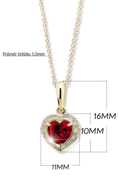 Náhrdelník srdce ze žlutého zlata ryzosti 585/1000. Srdíčko je ozdobené zářivými zirkony. Rozměry náhrdelníku najdete na podpůrné fotografii. Zlatý řetízek s karabinovým zapínáním má průměr oček 1,0mm.