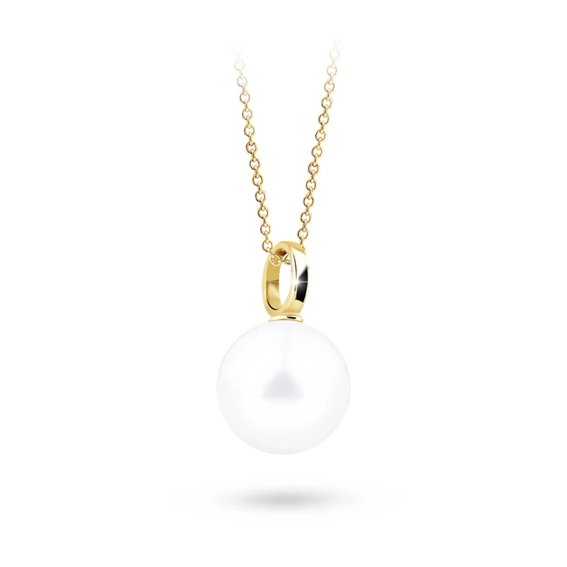 Přívěsek ze žlutého zlata ryzosti 585/1000. Přívěsek je osazení pravou říční perlou s průměrem 9,5mm. Říční perla je v kvalitě AAA. Zlatý řetízek vhodný k přívěsku najdete v kategorii řetízky.