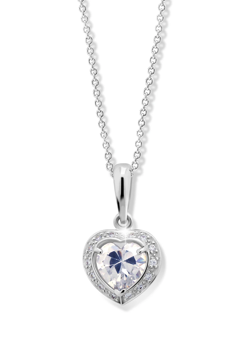 Přívěšek srdíčko z bílého zlata ryzosti 585/1000. Přívěsek je zdobený zirkony. Rozměry srdíčka najdete na podpůrné fotografii. Vhodný zlatý řetízek k přívěsku najdete v kategorii řetízky.