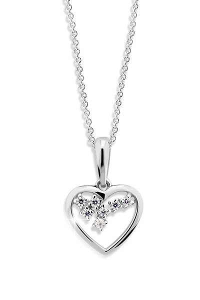 Přívěšek srdíčko z bílého zlata ryzosti 585/1000. Přívěsek je ozdobený zirkony. Závěsným očkem na přívěsku lze protáhnout zlatý řetízek s průměrem do 2,0mm. Srdíčko má rozměr 10x10mm. Celkové rozměry přívěsku najdete zobrazené na podpůrné fotografii.