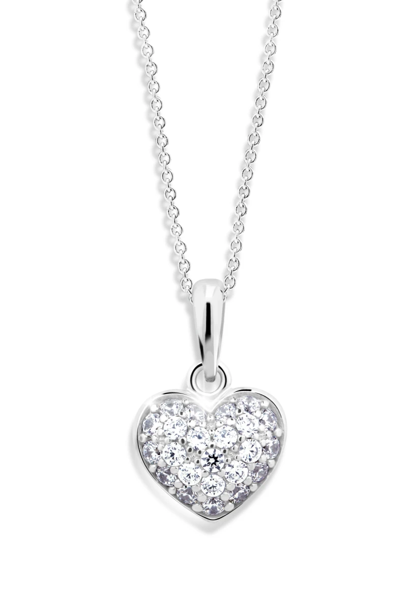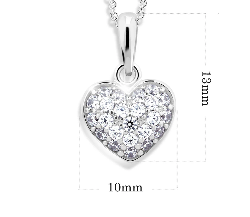 Přívěšek srdíčko z bílého zlata ryzosti 585/1000. Přívěsek je celý ozdobený zirkony. Závěsným očkem na přívěsku lze protáhnout zlatý řetízek s průměrem do 2,0mm. Srdíčko má rozměr 8x10mm. Celkové rozměry přívěsku najdete zobrazené na podpůrné fotografii.