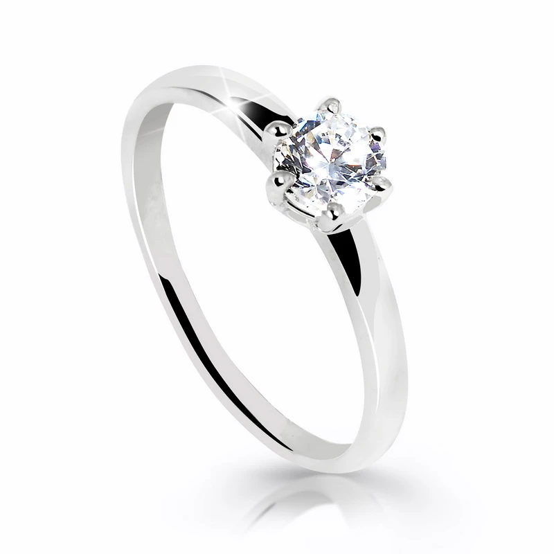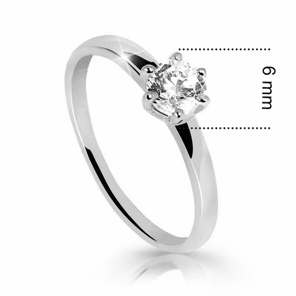 Prstýnek z bílého zlata se zirkonem. Obroučka prstenu je široká 1,9 mm. Průměr ozdoby se zirkonem 6 mm.