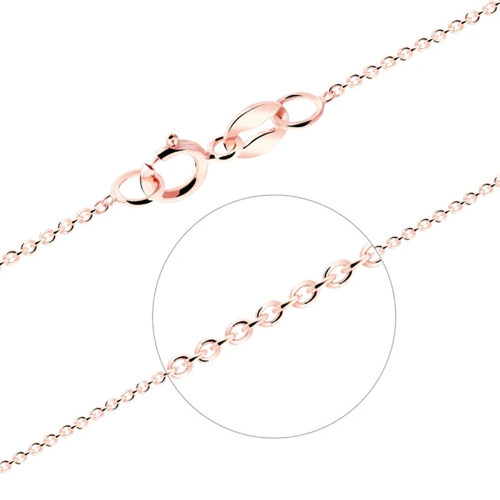 Jemný a lehký zlatý řetízek typu ankr z růžového zlata 585/000. Zlatý řetízek, který není dutý a proto je vhodný na zavěšený zlatého přívěsku. Zapínání řetízku je pérový kroužek. Očka řetízku jsou široká 1 mm.