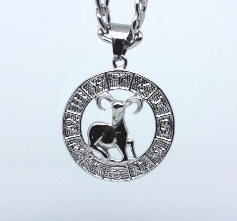 Přívěsek se znamením Beran (21.3 - 20.4). Přívěsek je vyrobený z chirurgické oceli. Znamení berana je "lemováno" symboly ostatních znamení zvěrokruhu. Součástí znamení je řetízek z chirurgické oceli vzor pancr se zapínáním na karabinu, dlouhý 60cm. Přívěsek má průměr 30mm. Na přání je možné řetízek zdarma zkrátit.