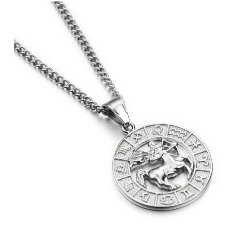Náhrdelník z chirurgické oceli se znamením Střelce. Jako všechny šperky z chirurgické oceli je také tento přívěsek a řetízek odolný proti poškození, nevyvolává alergické reakce, neoxiduje a je barevně stálý.