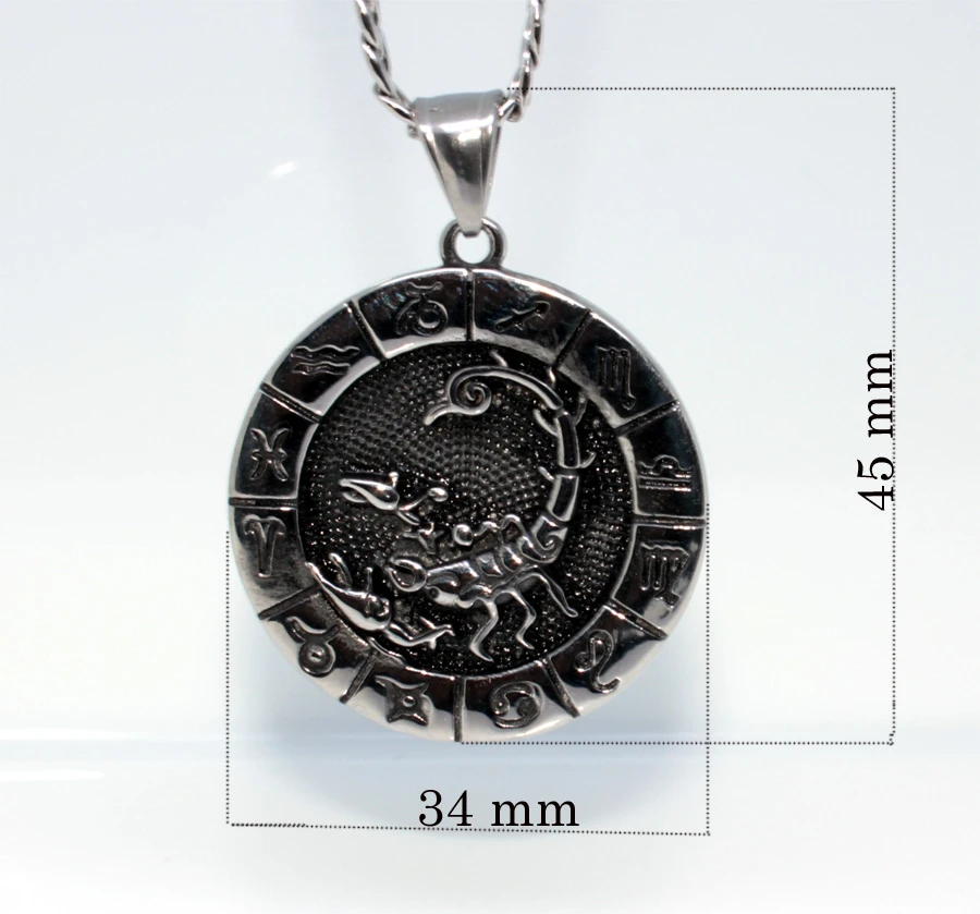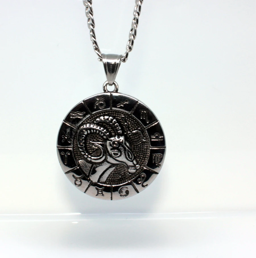 Přívěsek se znamením Beran (21.3 - 20.4). Přívěsek je vyrobený z chirurgické oceli. Znamení berana je "lemováno" symboly ostatních znamení zvěrokruhu. Součástí znamení je řetízek z chirurgické oceli vzor pancr se zapínáním na karabinu, dlouhý 60cm. Přívěsek má průměr 34mm. Na přání je možné řetízek zdarma zkrátit.