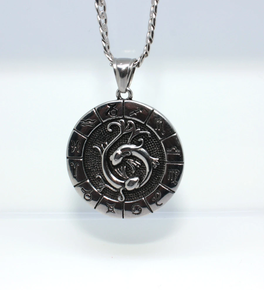 Přívěsek se znamením ryb (21.2 - 20.3). Přívěsek je vyrobený z chirurgické oceli. Znamení ryb je "lemováno" symboly ostatních znamení zvěrokruhu. Součástí znamení je řetízek z chirurgické oceli vzor pancr se zapínáním na karabinu, dlouhý 60cm. Přívěsek má průměr 34mm. Na přání je možné řetízek zdarma zkrátit.